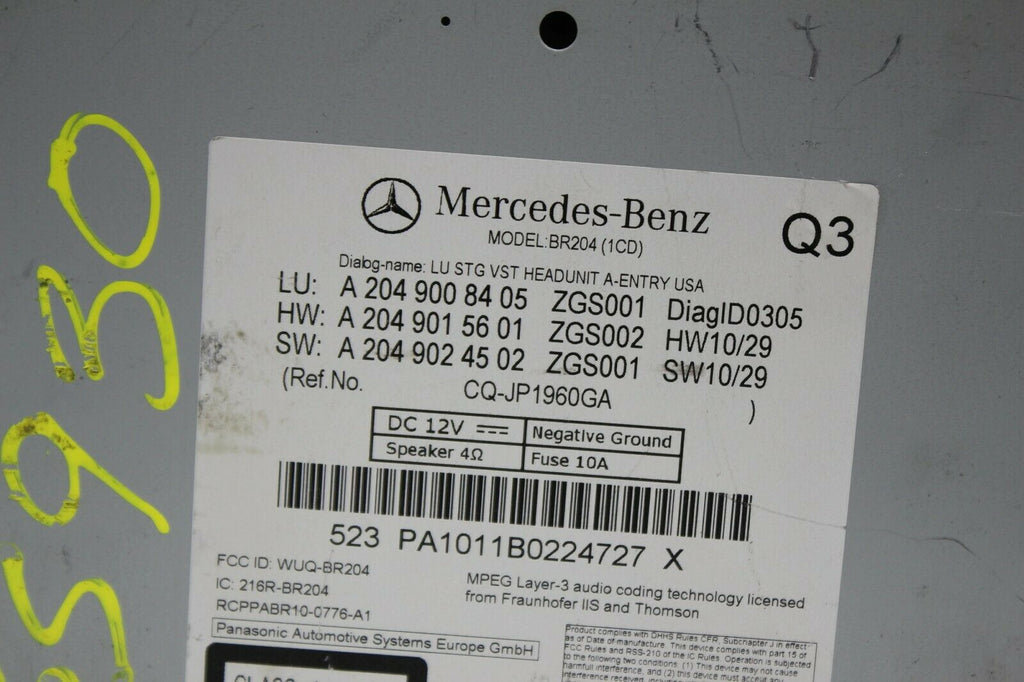 2011-2012 Mercedes Benz W204 C Class Radio Stereo Cd Player A2049008405