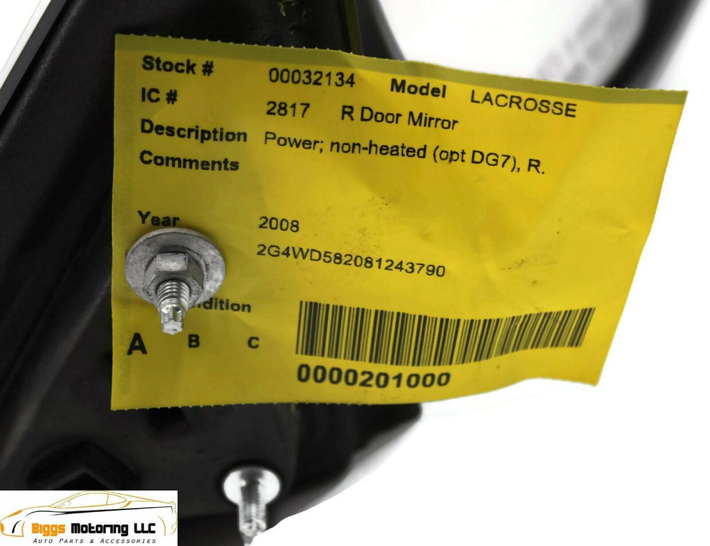 2005-2009 BUICK LACROSSE PASSENGER RIGHT SIDE POWER DOOR MIRROR GRAY 32134