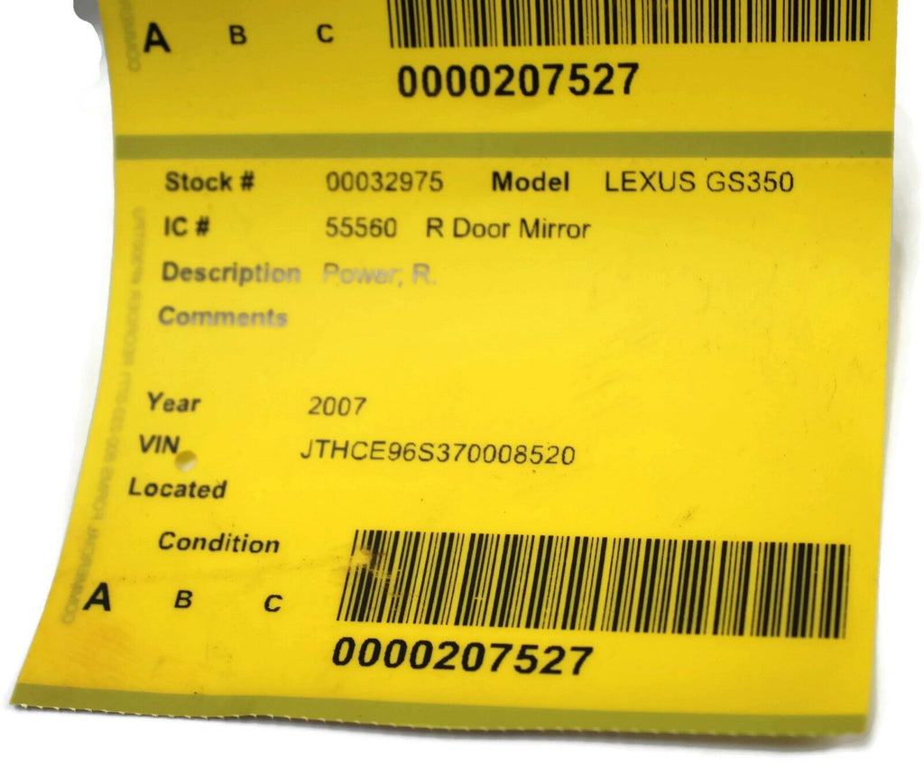 2006-2007 Lexus Gs350 Passenger Right Side Power Door Mirror Silver 32975