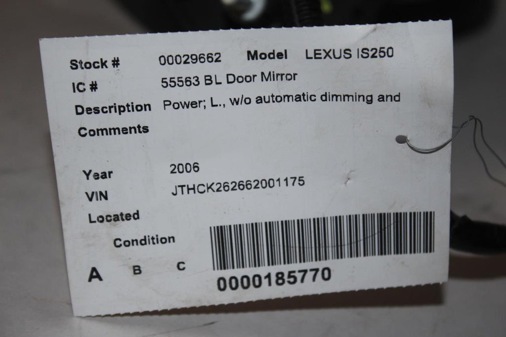 2006-2008 LEXUS IS350 DRIVER LEFT SIDE POWER DOOR MIRROR BLACK