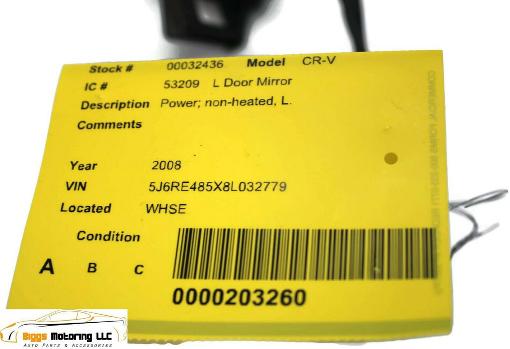 2007-2011 Honda Cr-V Driver Left Side Power Door Mirror Black 32436