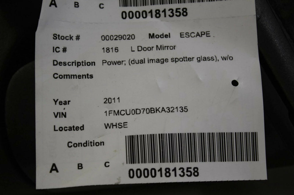 2008-2012 FORD ESCAPE DRIVER LEFT SIDE POWER DOOR MIRROR BLACK 29020