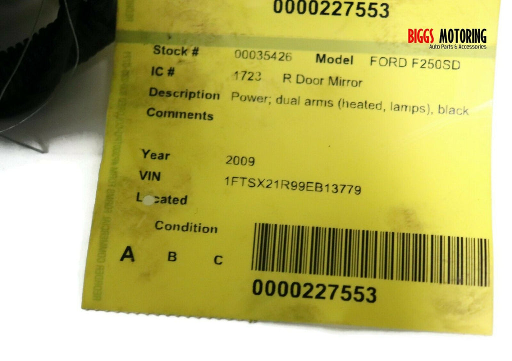 2008-2012 Ford F250 Passenger Right Side Dual Arm Power Door Mirror Black 35426