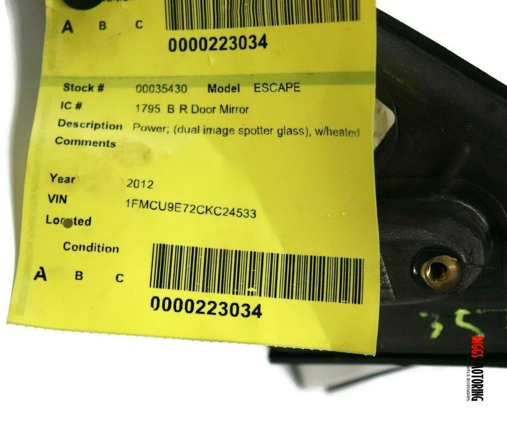 2010-2012 Ford Escape Passenger Right Side Power Door Mirror White 35430