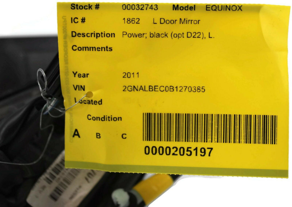 2010-2015 Chevy Equinox Driver Left Side Power Door Mirror Black 31123