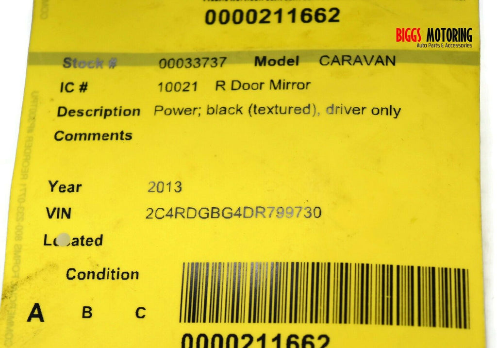 2011-2017 Dodge Caravan Passenger Right Side Power Door Mirror Black 33737