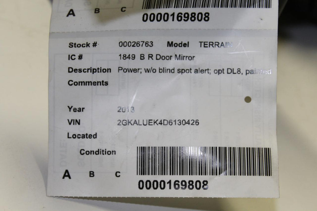 2013-2014 Gmc Terrian Right Passeenger Power Side View Mirror