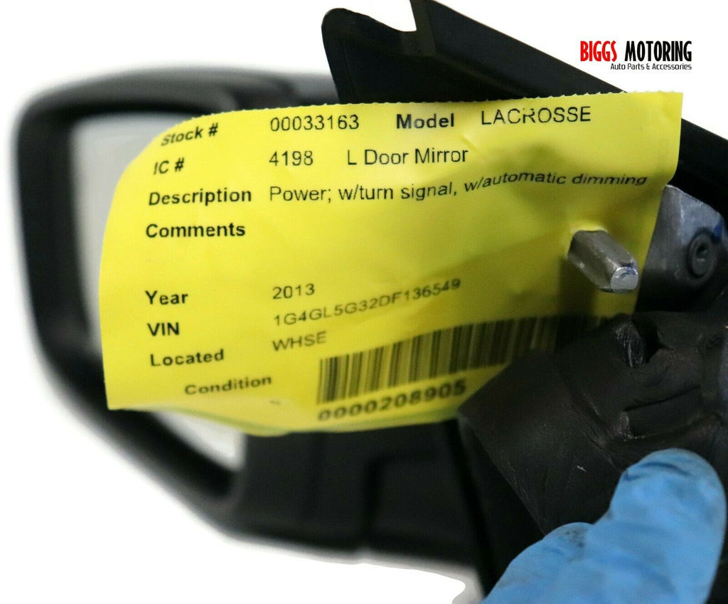 2013-2016 Buick Lacrosse Driver Left Side Power Door Mirror Black 33163