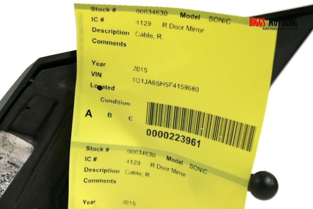 2015-2018 Chevy Sonic Passenger Right Side Manual Cable Door Mirror Black 34630