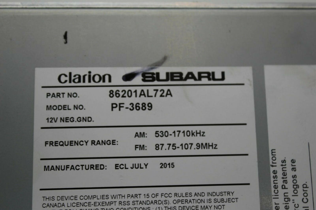 2015-2016 Subaru Legacy Outback Radio Cd Player Touch Screen 86201AL72A