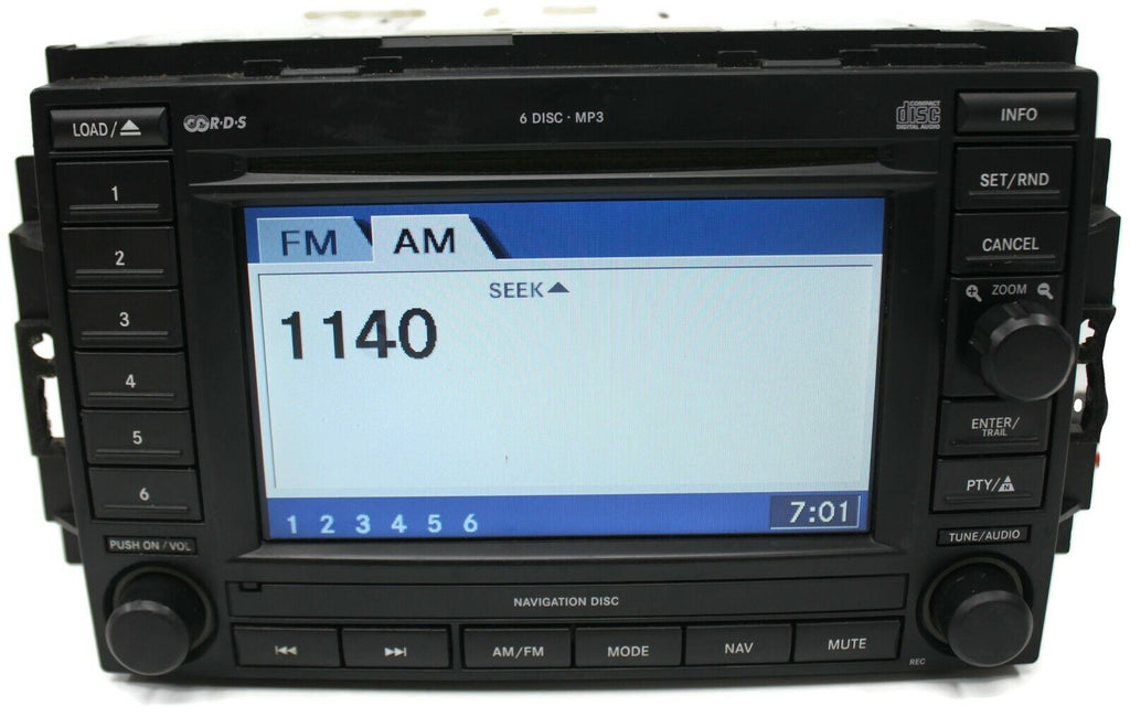 Fa ctory Oem Used Navigation Radio Stereo 6 Disc Changer Mp3 Cd Player  Item is In Good Working Order, Ready To Be Installed... Bench Tested  Item Will Show Signs Of Normal Used Wear, Minor Scratches, Scrapes, & Scuffs Etc See Pictures For Better Details Model: 300, Durango, Jeep  Year: 2003-2008 Part #:P056038646AM Track Page Views With Auctiva's FREE Counter