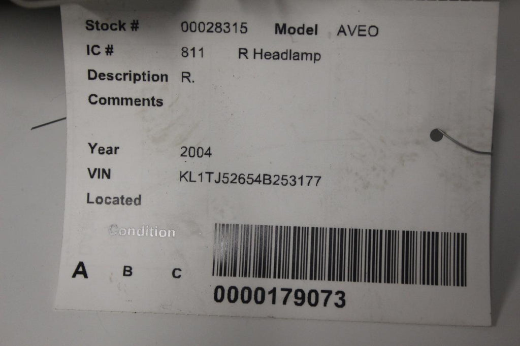 2004-2008 CHEVY AVEO FRONT PASSENGER SIDE HEADLIGHT 28315