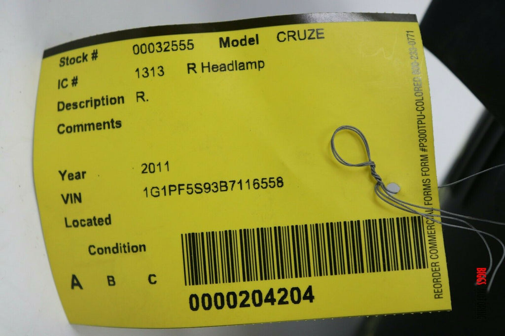 2011-2012 Chevy Cruze Passenger Right Side Front Head Light Lamp 32555