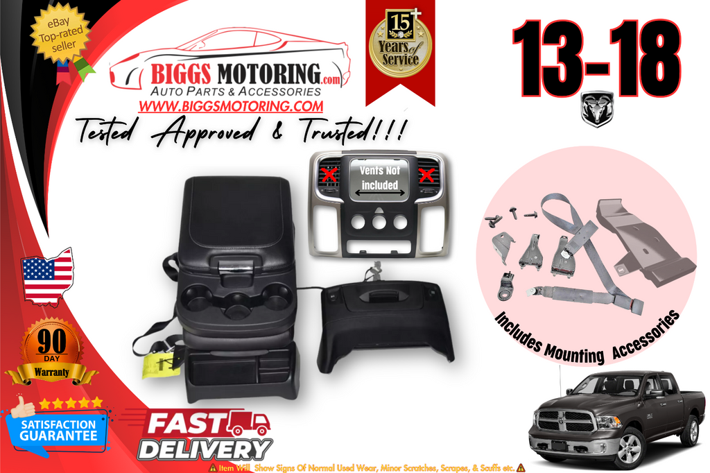 Fa ctory Oem Used Center Console that inludes Center Console Jump Seat, Radio Bezel compatible with jumpseat, mouting hardware etc. see pictures Item is In Good Working Order, Ready To Be Installed.. Item Will Show Signs Of Normal Used Wear, Minor Scratches, Scrapes, & Scuffs Etc See Pictures For Better Details