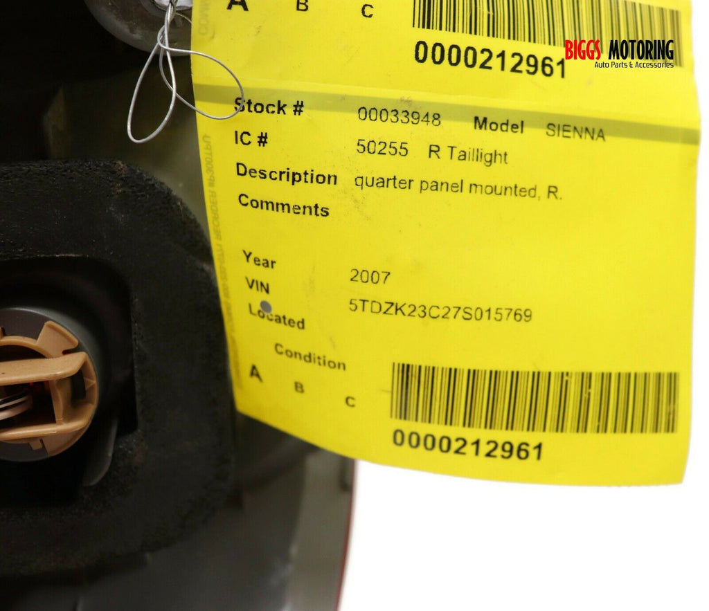 2006-2010 Toyota Sienna Passenger Right Side Rear Tail Light 33948