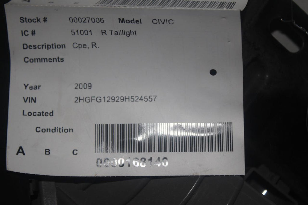 2008-2011 HONDA CIVIC COUPE PASSENGER SIDE TAIL LIGHT 27006
