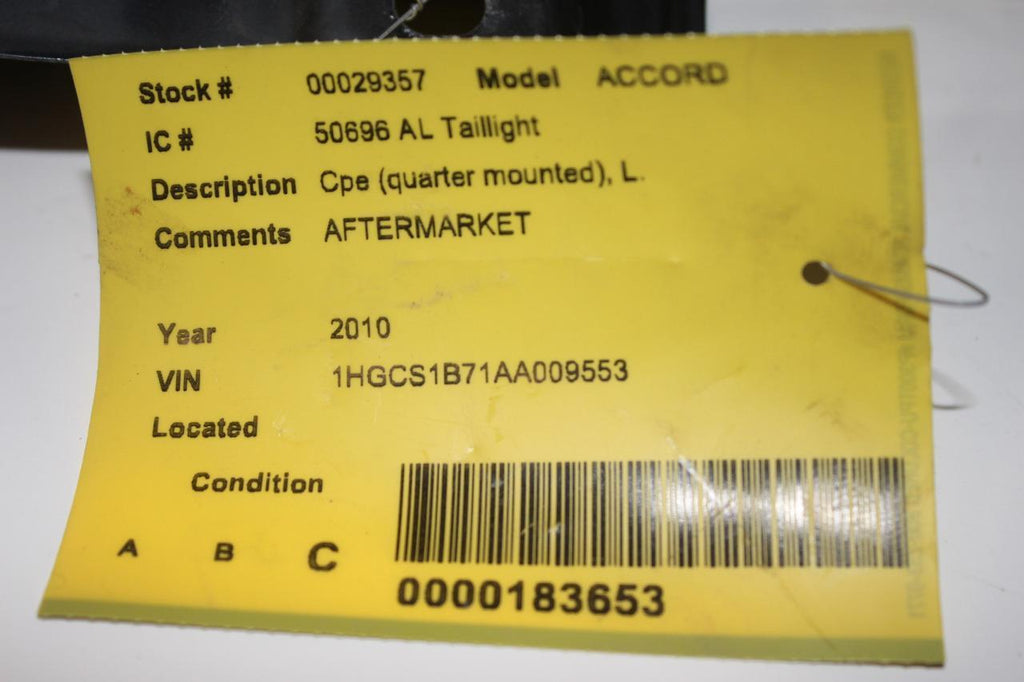 2008-2012 HONDA ACCORD COUPE DRIVER LEFT SIDE REAR TAIL LIGHT 29357 RE# BIGGS