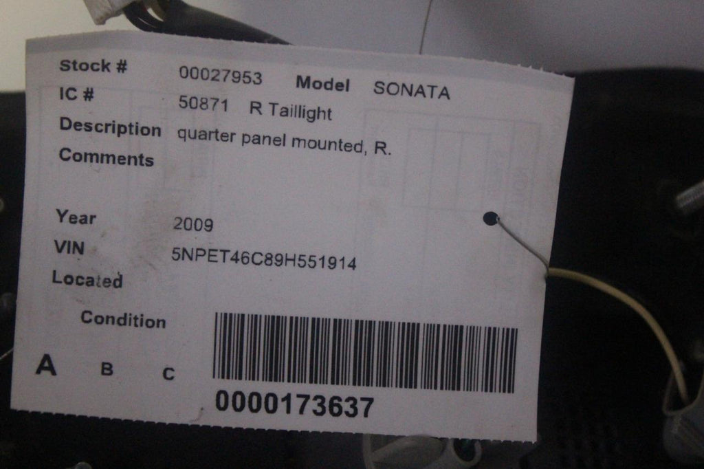 2009-2010 HYUDAI SONATA RIGHT PASSENGER SIDE TAIL LIGHT 27953
