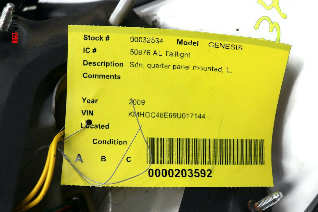 2009-2012 Hyundai Genesis Driver Left Side Rear Tail Light 32534
