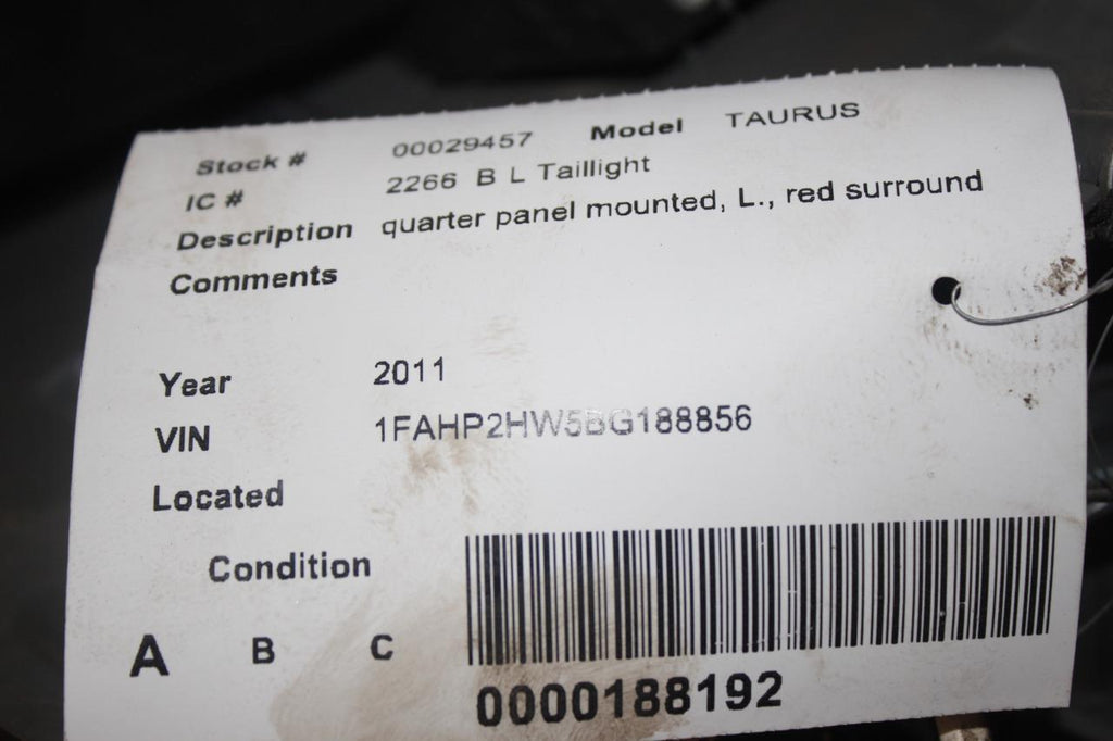2010-2012 FORD TAURUS DRIVER LEFT SIDE REAR TAIL LIGHT 29457/ 28740