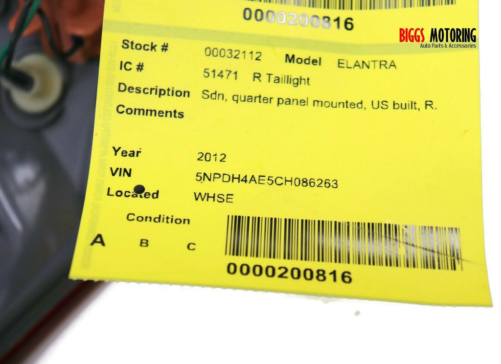 2011-2013 Hyundai Elantra Sdn Passenger Right Side Rear Tail Light 32112