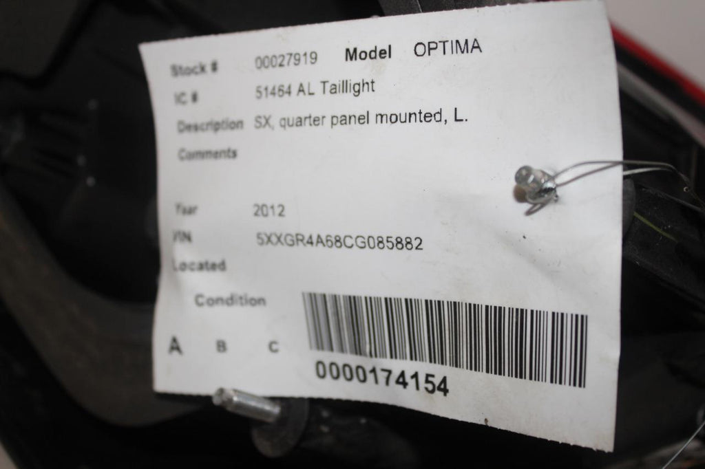 2011-2013 KIA OPTIMA DRIVER LEFT SIDE REAR TAIL LIGHT 27919