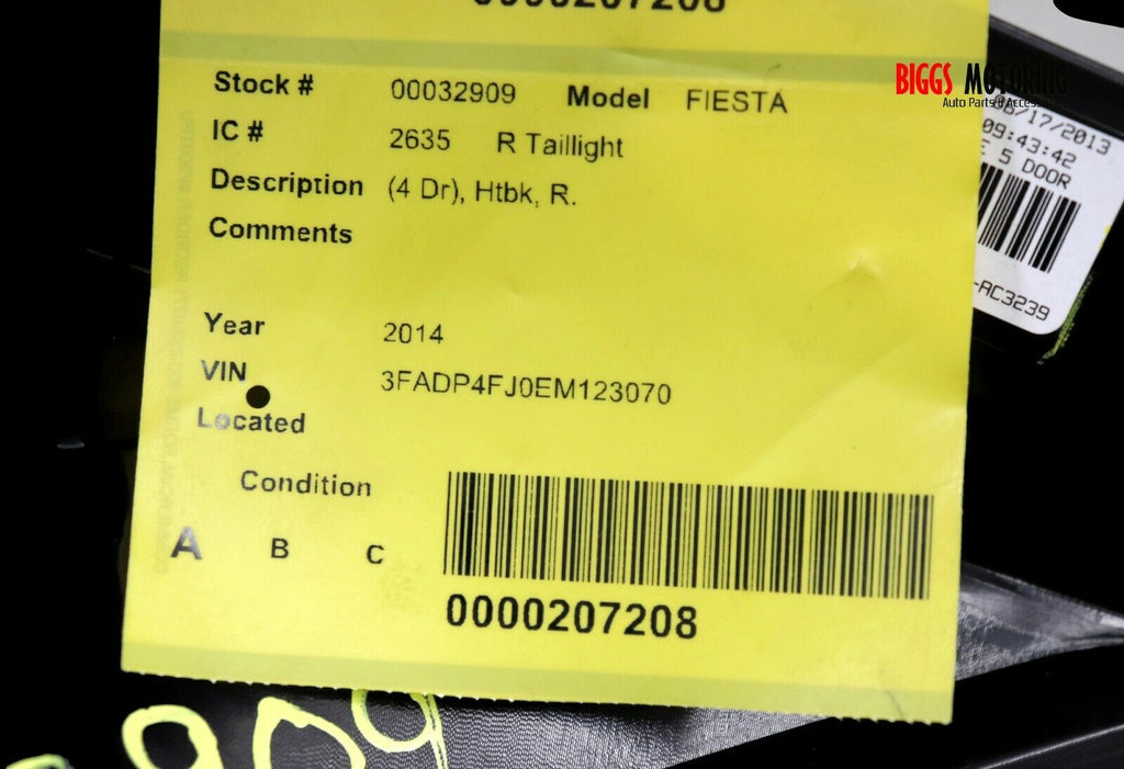 2014-2017 Ford Fiesta 4Drs Htbk Passenger Right Side Rear Tail Light 32909