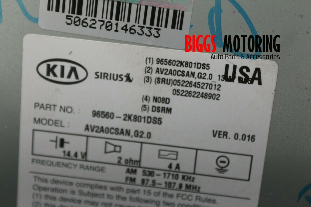 12-13 Kia Soul Navigation Radio Stereo Display Screen Cd Player AC 96560-2K801D