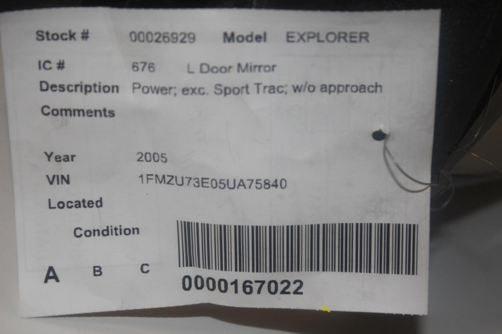 2002-2005 FORD EXPLORER DRIVER LEFT SIDE POWER DOOR MIRROR BLACK