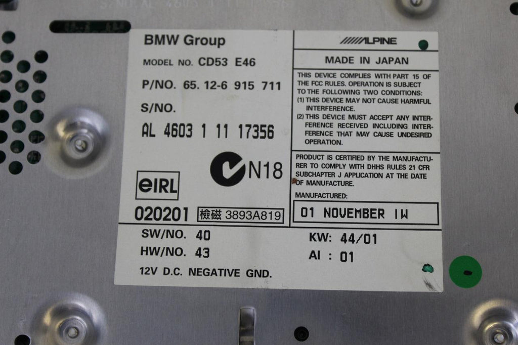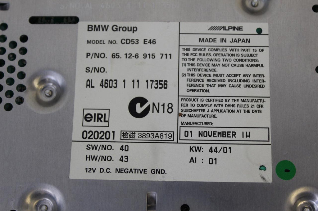 2002-2006 BWM 325i AM FM BUSINESS CD PLAYER RADIO 65.12-6 915 711