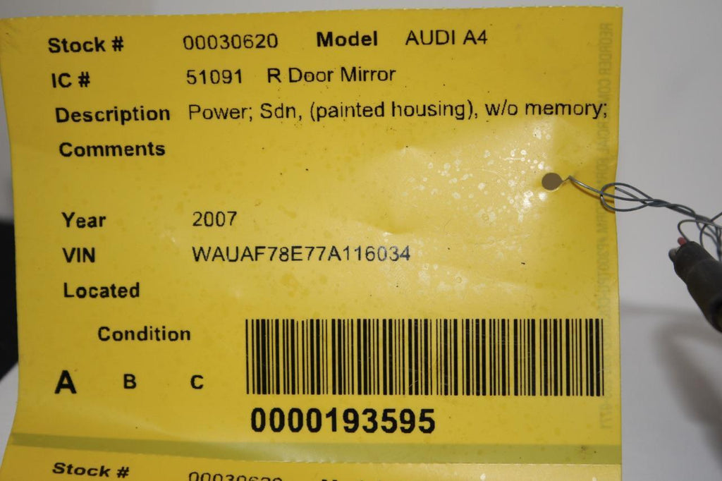 2003-2008 AUDI A4 SEDAN PASSENGER RIGHT SIDE POWER DOOR MIRROR WHITE