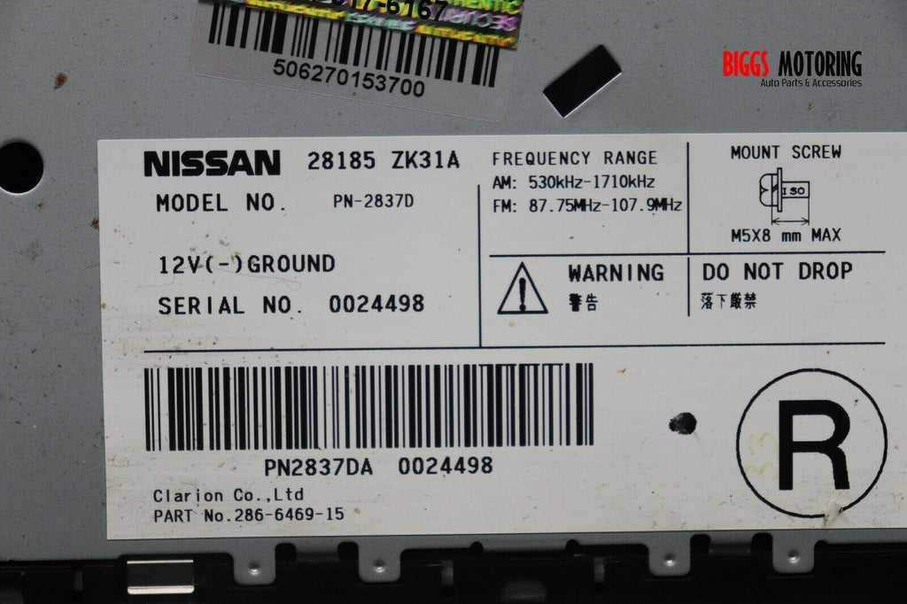 2007-2008 Nissan Maxima Radio Stereo 6 Disc Changer Cd Player 28185 ZK31A