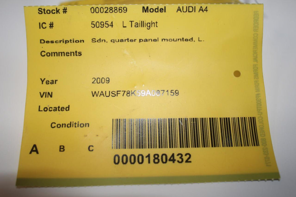 2007-2009 AUDI A4 DRIVER LEFT SIDE REAR TAIL LIGHT 28869