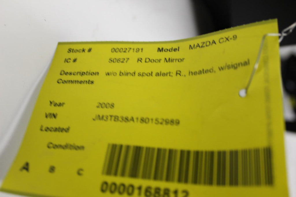 2007-2009 MAZDA CX-9 RIGHT PASSENGER SIDE POWER DOOR MIRROR 27191
