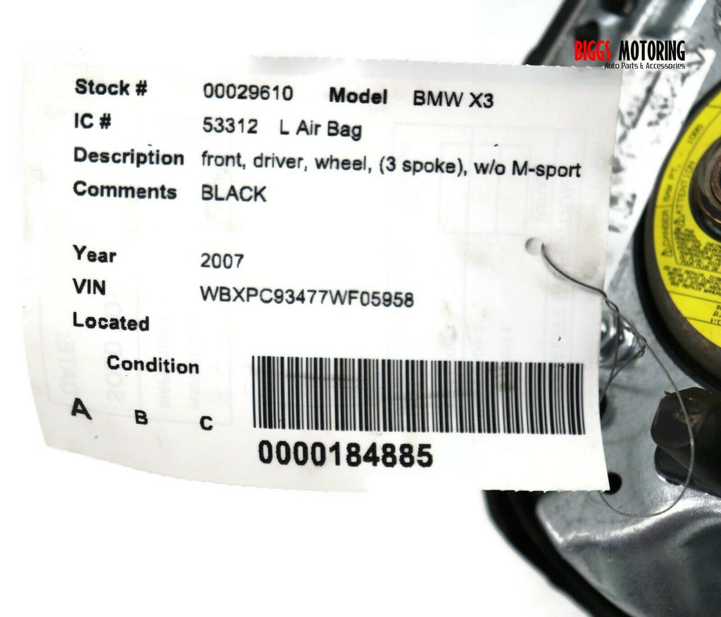 2007-2010 BWM X3 Driver Side Steering Wheel Air Bag Black 29610