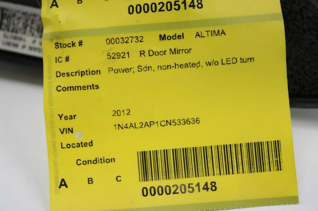 2007-2012 Nissan Altima Passenger Right Side Power Door Mirror Blue 32732