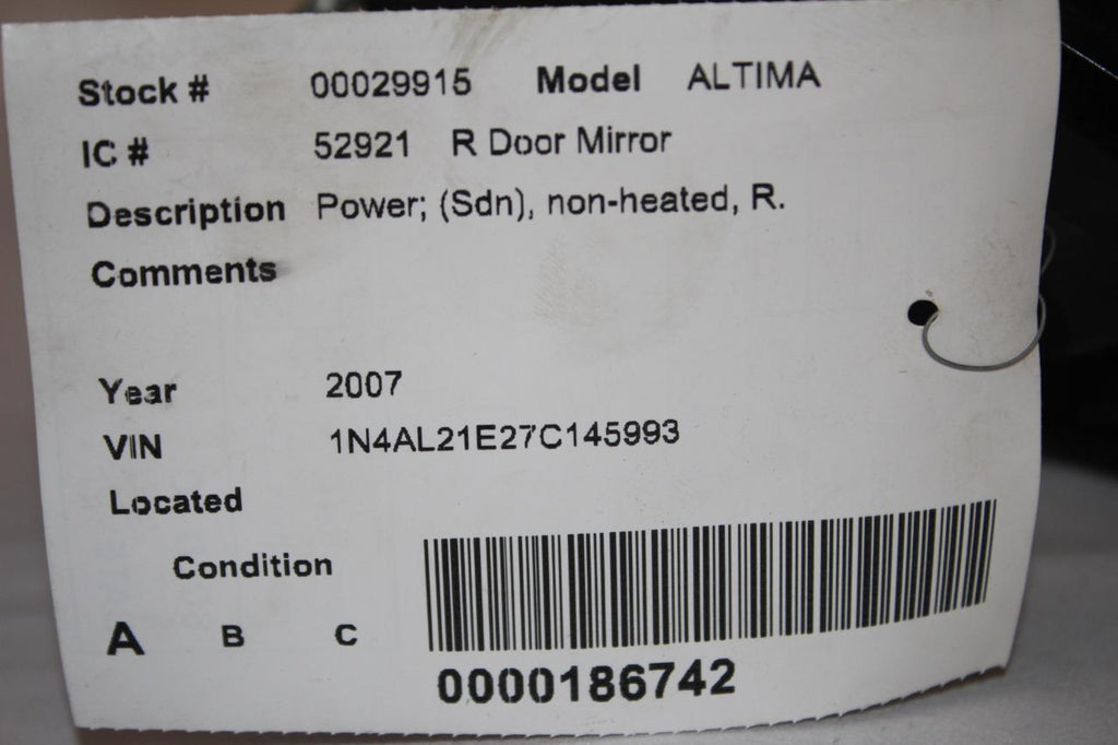 2007-2012 NISSAN ALTIMA PASSENGER RIGHT SIDE POWER DOOR MIRROR GRAY