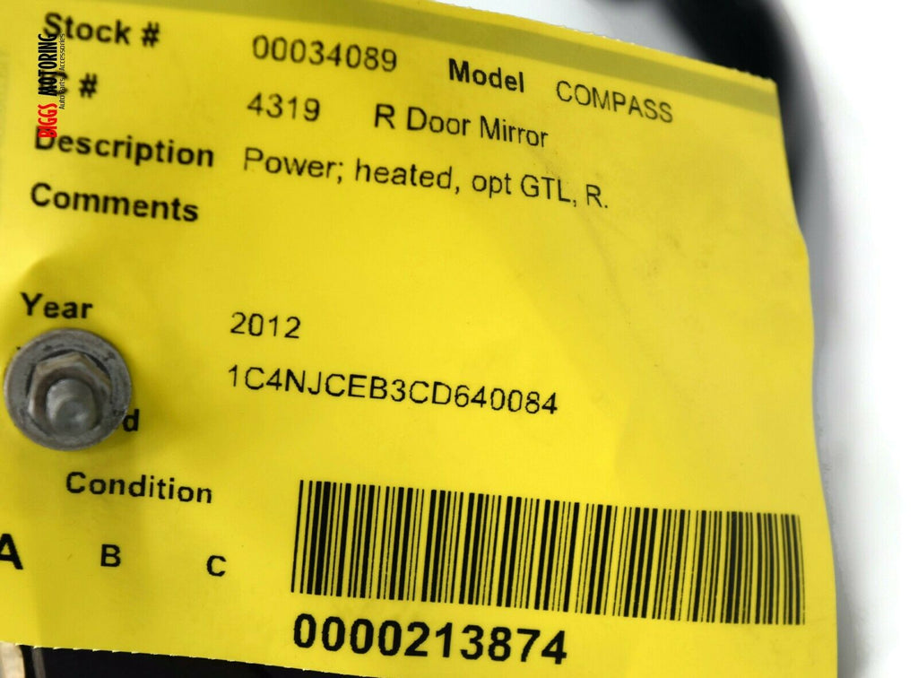 2007-2016 Jeep Compass Passenger Right Side Power Door Mirror Black 34089