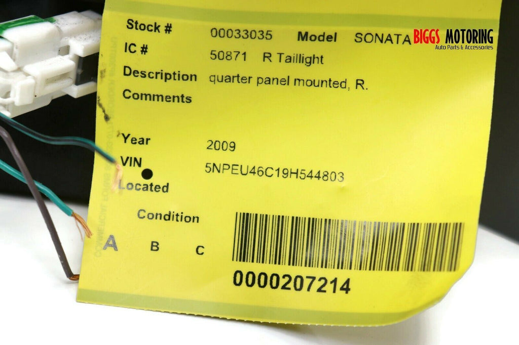2009-2010 Hyundai Sonata Passenger Right Side Rear Tail Light 33035