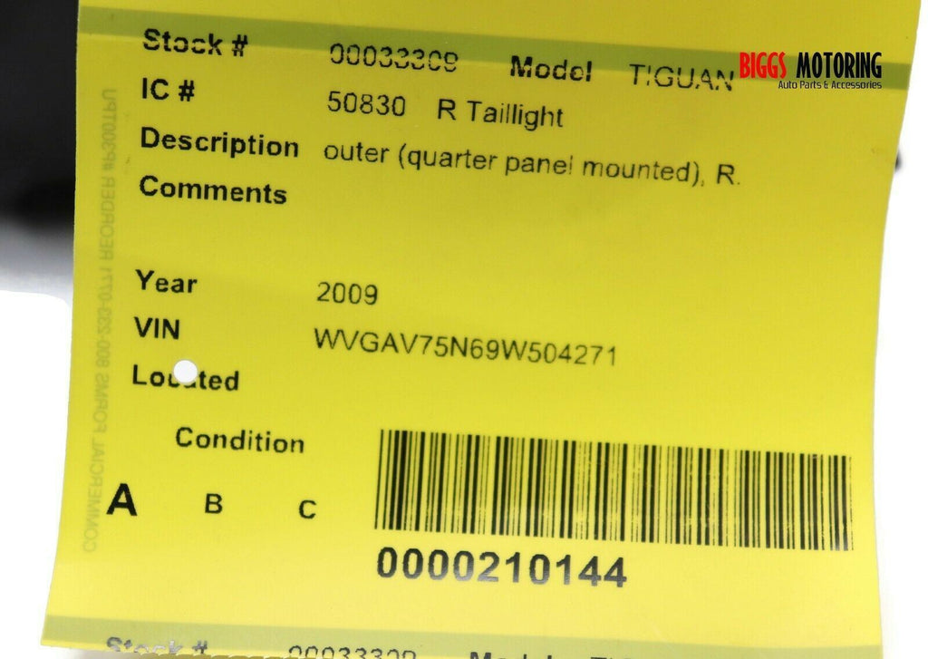 2009-2011 VW Tiguan Passenger Right Side Rear Tail Light 33309