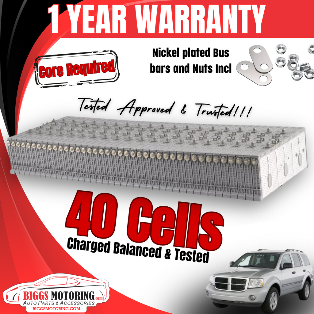 Revitalize your hybrid SUV’s performance with this fully reconditioned 40-cell battery pack. Designed for 2009 Dodge Durango models, this unit includes genuine Panasonic OEM modules, expertly restored and tested by Biggs Motoring.