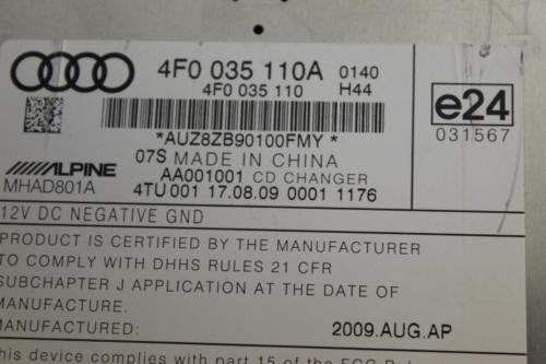 2010-2013 Audi A6 Vw Passat 6 Disc Changer Cd Player Unit