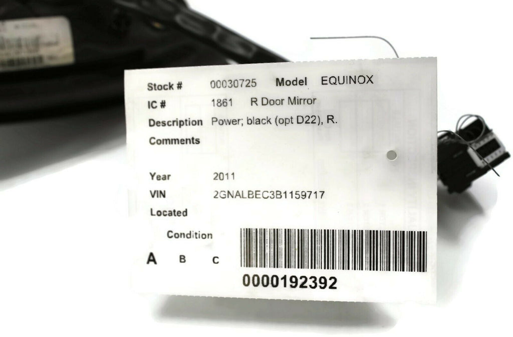 2011-2014 Chevy Equinox Passenger Right Side Power Door Mirror Black 30725