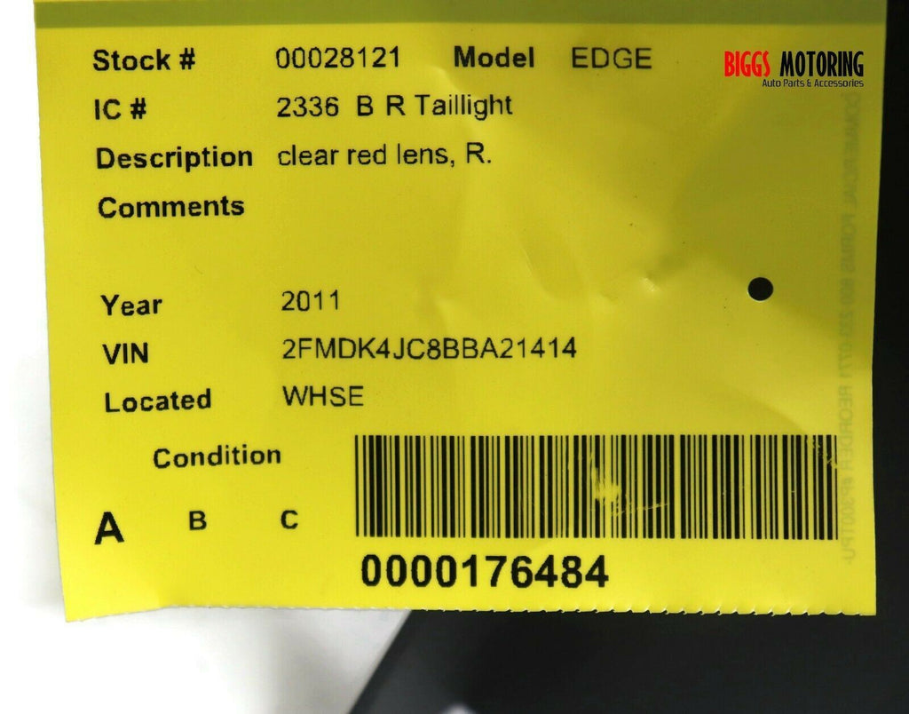 2011-2014 Ford Edge Passenger Right Side Rear Tail Light 28121