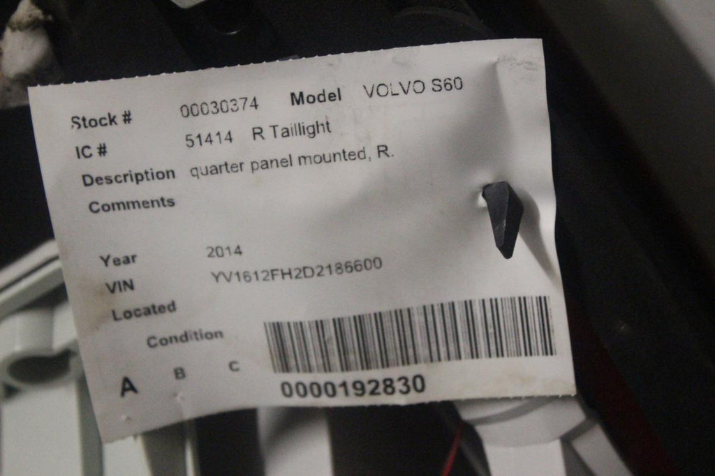 2011-2015 VOLVO S60 PASSENGER SIDE TAIL LIGHT 30374