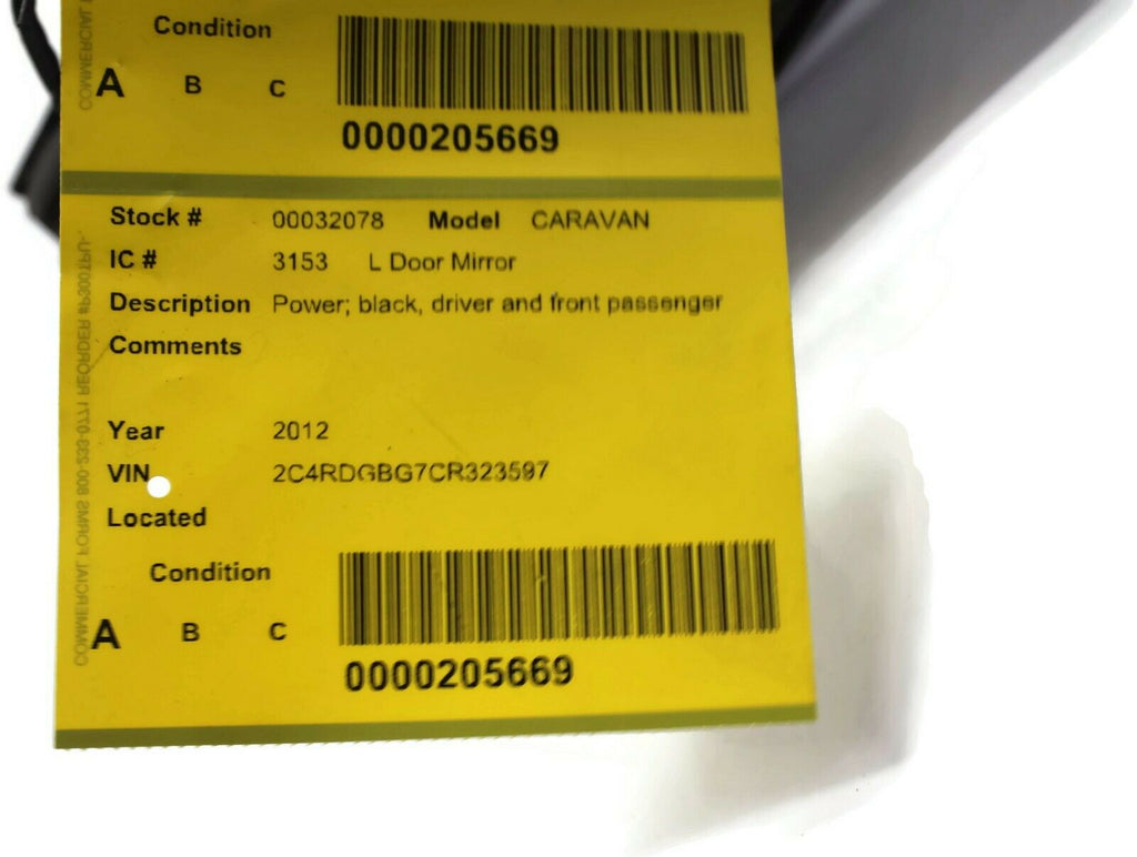 2011-2016 Dodge Caravan Driver Left Side Power Door Mirror Black 32078