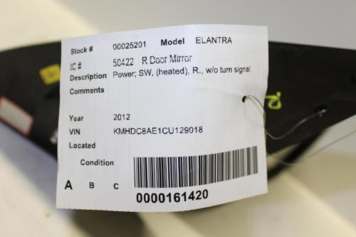 2011-2016 HYUNDAI ELANTRA PASSENGER POWER SIDE VIEW MIRROR