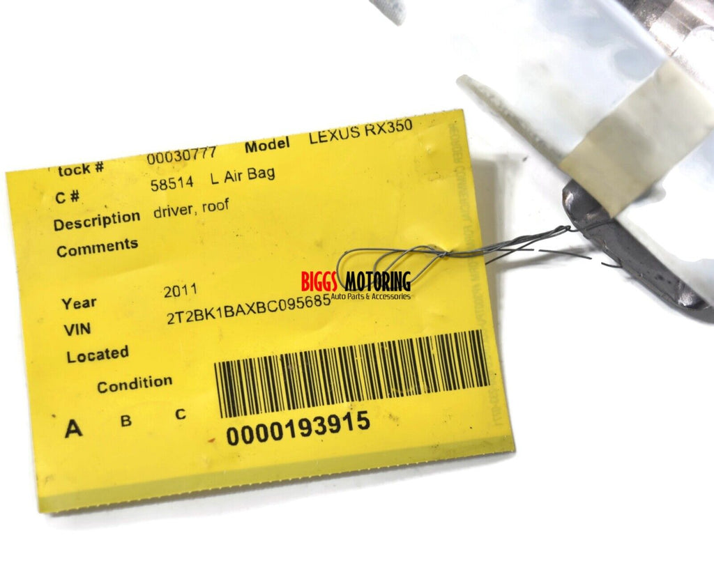 2011 Toyota Highlander Passenger Right Side Curtain Roof Airbag Oem Dot-Sp-12135