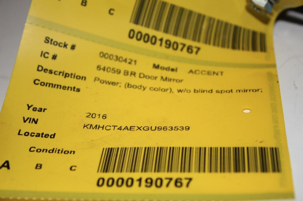 2012-2016 HYUNDAI ACCENT PASSENGER RIGHT SIDE POWER DOOR MIRROR BLUE