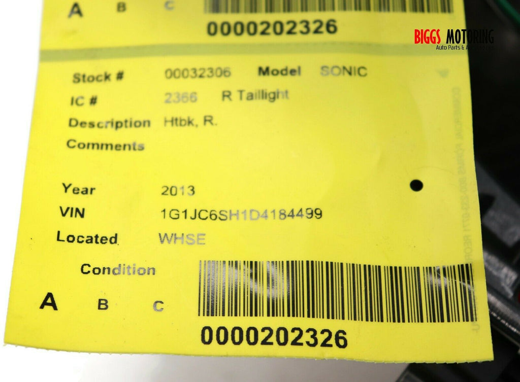 2013-2016 Chevy Sonic Passenger Right Side Rear Tail Light 32306